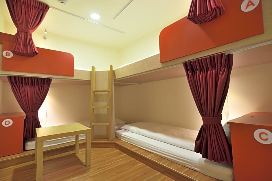 This air-conditioned dormitory room can sleep up to 4 male guests in bunk beds. Rate is for 1 male guest only.